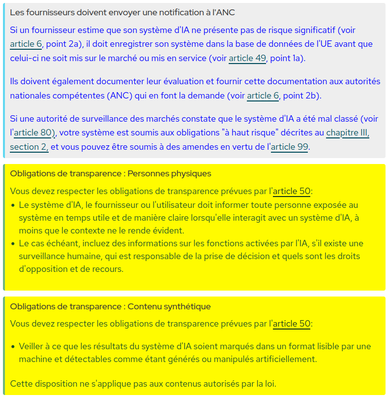 - Synthetic data : obligation de préciser qu'il s'agit de données générées artificiellement)