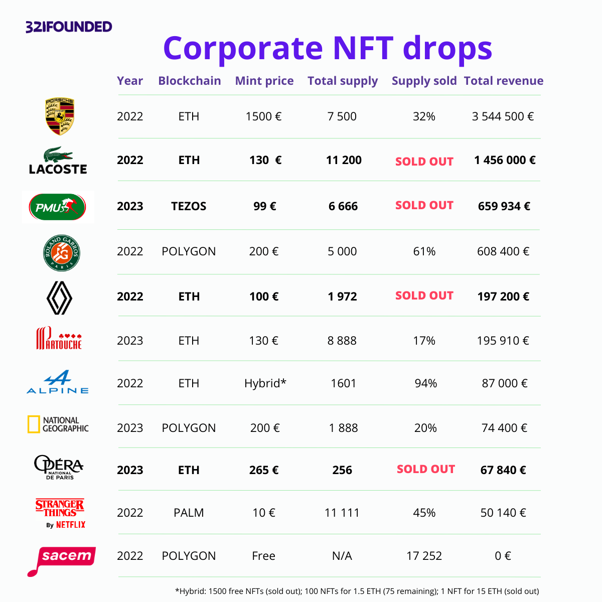 NFTs (non-fungible tokens) have grown in popularity in recent years, some large companies have dared to take the Web3 bet, which has sometimes resulted in real success. Among the projects that generated the most revenue were Porsche, Lacoste, PMU, PMU, Roland Garros, Renault, Partouche, Alpine, National Geographic, National Geographic, the Paris Opera and Netflix. Sacem's NFT project is also remarkable, as it allowed its members to have unchangeable proof of ownership of their copyright. NFTs clearly have interesting potential for businesses looking for new positioning and new revenue streams.